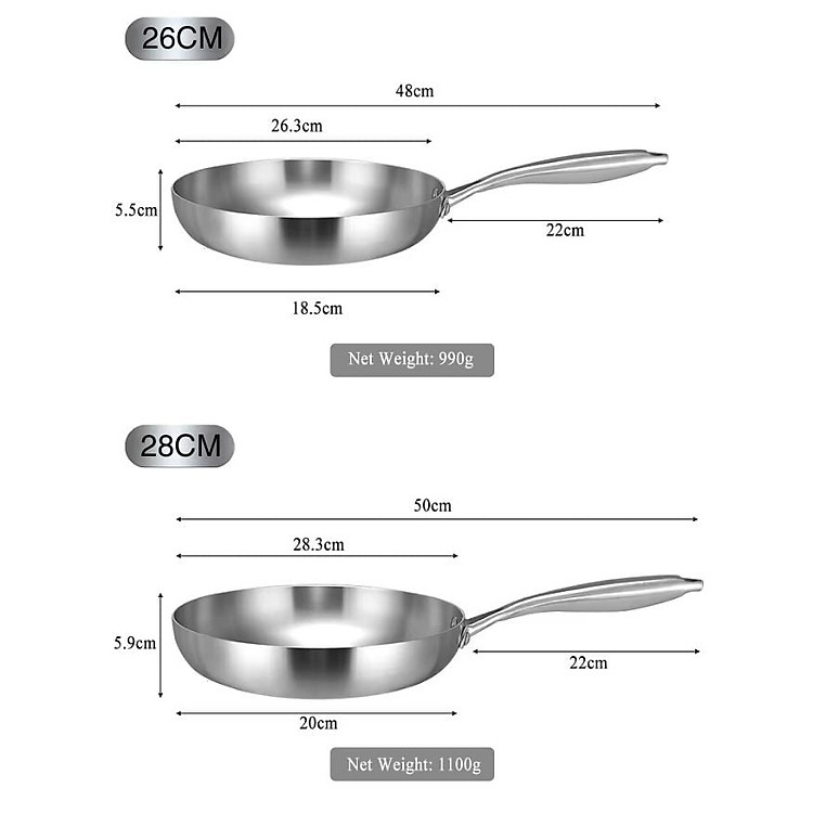 Chảo Inox Mishio 28cm (MK436): Phù hợp cho gia đình 4-5 người, lòng chảo rộng giúp xào nấu thoải mái, chiên cá nguyên con dễ dàng.