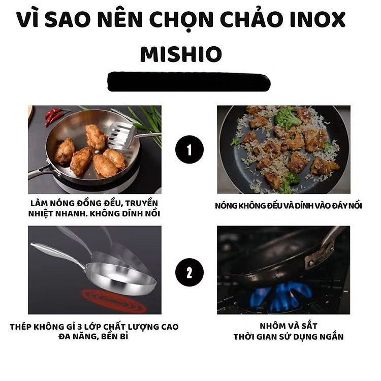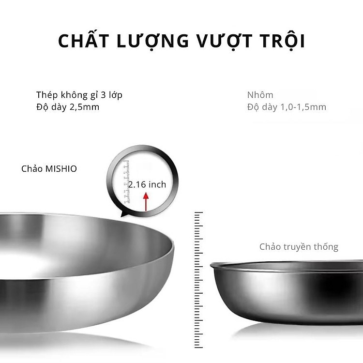 Không giống như chảo nhôm hay chảo chống dính thông thường, Chảo Inox Mishio được thiết kế với chất lượng vượt trội, tập trung vào độ bền và sự an toàn tuyệt đối cho sức khỏe.