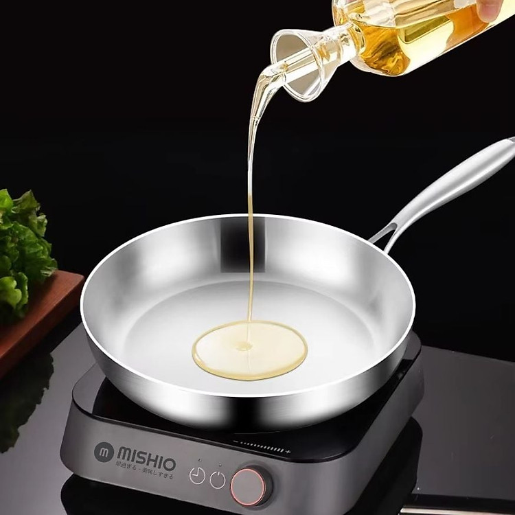 Chảo Inox Mishio 24cm (MK434): Kích thước đa dụng, phù hợp cho gia đình 2-3 người, dùng để xào rau, chiên đậu, làm các món áp chảo.