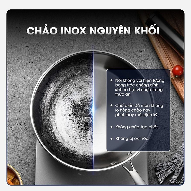 Không hạt vi nhựa: Loại bỏ nguy cơ hạt vi nhựa từ lớp phủ bong ra, lẫn vào thức ăn, gây hại cho sức khỏe.