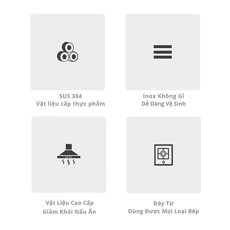| Chất liệu nồi & chảo | Inox 304 |