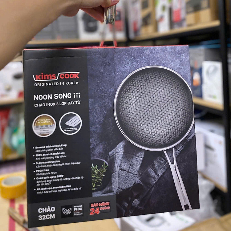 Chảo cạn Noon Song Kims Cook cấu trúc inox 3 lớp đáy từ chống dính ở hai mặt cùng công nghệ Black Cube tiên tiến vân lục giác chống dính siêu hạng, không trầy xướt. Quai inox cách nhiệt có thể cầm nắm trực tiếp. Sản phẩm có thể sử dụng trên nhiều loại bếp khác nhau như: bếp gas, bếp điện, hồng ngoại... kể cả bếp từ và máy rửa chén.