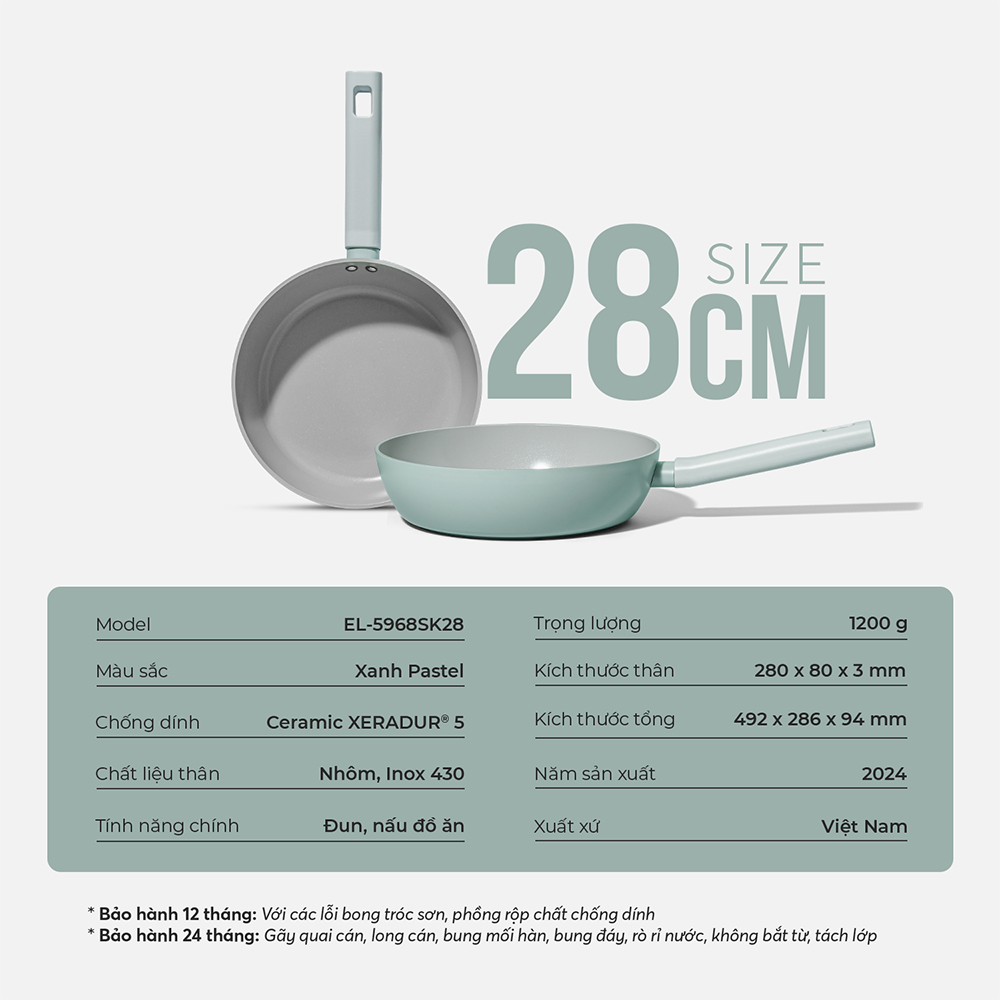 Chảo phủ sứ an toàn Elmich Verona EL-5968SK nhiều size, Hàng chính hãng, dùng được mọi bếp - JoyMall