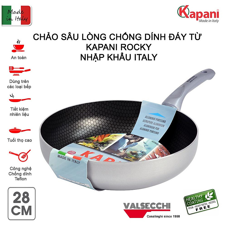 - Chảo KAPANI Linea Rocky được sản xuất và nhập khẩu nguyên chiếc từ Ý (Made in Italy)
