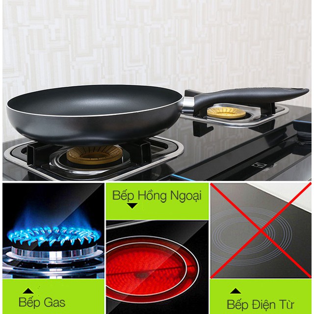 Lớp chống dính Whitford bền bỉ: Lòng chảo được phủ 3 lớp chống dính Whitford (USA) cho độ bền cao, không dễ bong tróc như các loại chảo khác. An toàn cho sức khỏe: sử dụng công nghệ chống dính Whitford - USA tuyệt đối không có tình trạng thôi nhiễm vào thức ăn, an toàn cho sức khỏe. Bề mặt chống dính siêu bền, tuổi thọ dài, dễ dàng vệ sinh và tẩy rửa. Chảo còn giúp giữ được hương vị tươi ngon của thức ăn trong thời gian tương đối. Sử dụng được trên nhiều loại bếp: Chảo dùng được trên bếp gas, bếp hồng ngoại, không dùng trên bếp từ.