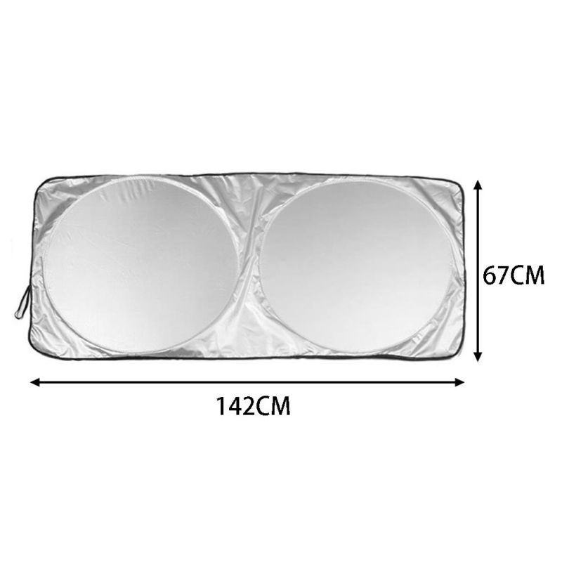 The car windscreen sun shade cover helps block UV rays to reduce temperature and protect your vehicle's interior by preventing your dashboard from cracking. Comes with a pouch so you can easily store in your car.