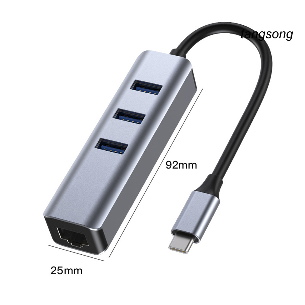Item Name: Adapter Material:Aluminum Alloy Interface Type: Type-C, RJ45, 3 x USB3.0 Transmission Rate: 100/1000Mbps USB3.0 Output: DC5V/900mA USB3.0 Transmission: Up to 5Gbps Size:9.2cmx2.5cmx1.9cm/3.62inx0.98inx0.75in