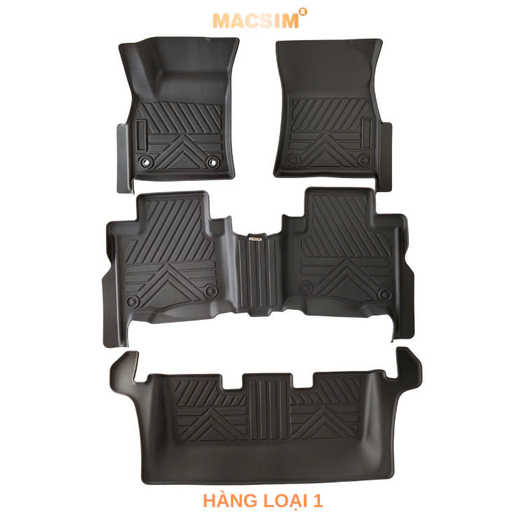 Thảm TPE đúc sẵn theo form sàn, tích hợp gờ cao xung quanh chốt khóa, giúp chống nước và bùn đất lọt xuống sàn nỉ.