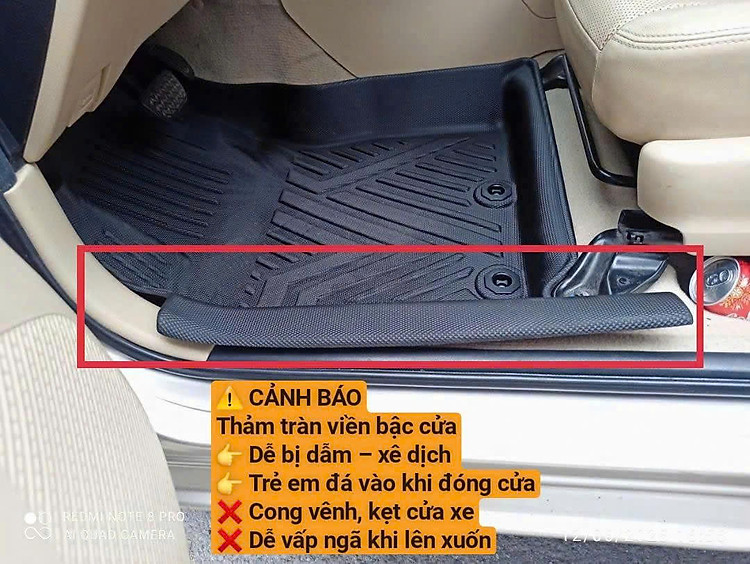 → Chỉ áp dụng cho một số mẫu xe có khe cửa đủ rộng. Thực tế cho thấy thảm tràn viền dễ bị giẫm đạp, xê dịch, kẹt cửa làm biến dạng tấm thảm; thảm lọt lòng Macsim là giải pháp an toàn và bền bỉ hơn.