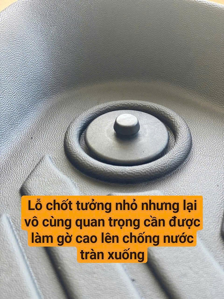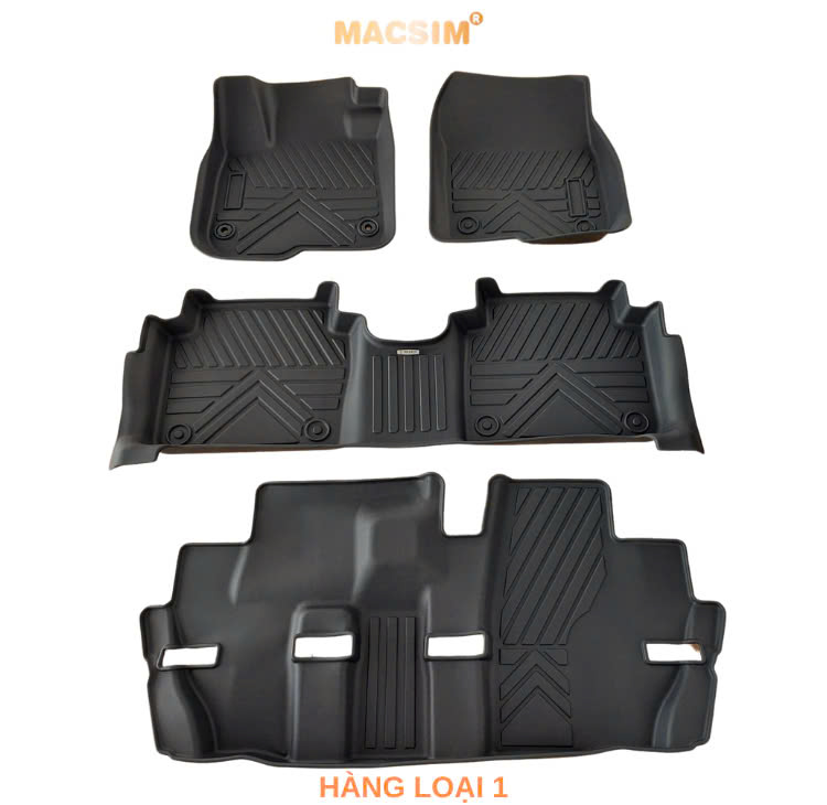 Thảm TPE đúc sẵn theo form sàn, tích hợp gờ cao xung quanh chốt khóa, giúp chống nước và bùn đất lọt xuống sàn nỉ.