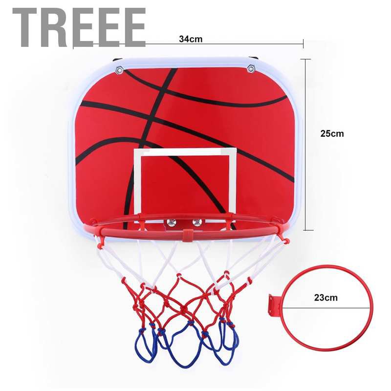 Specifications: Condition: 100% Brand New Material: Plastic + Iron Color: Red + Blue + White + Black(Shown as pictures) Board Size(WxH): Approx. 34x25cm/13.39x9.84inch Basketball Dia: Approx. 15cm/5.91inch Hoop Dia: Approx. 23cm/9.06inch Weight: Approx. 610g
