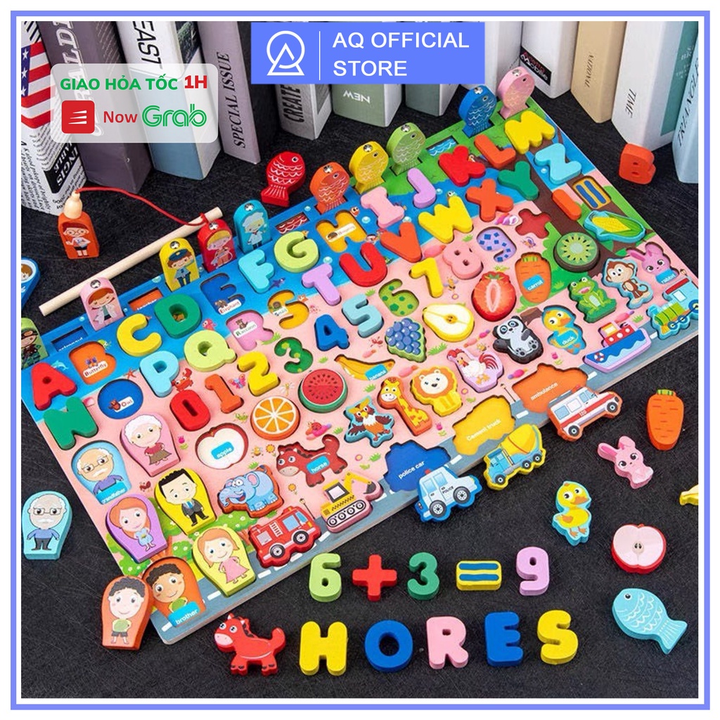 Bộ đồ chơi gỗ cao cấp 6in1 ⚡️𝐅𝐑𝐄𝐄 𝐒𝐇𝐈𝐏⚡️ ghép chữ, học số, câu cá kích thích trí thông minh của trẻ 134 chi tiết