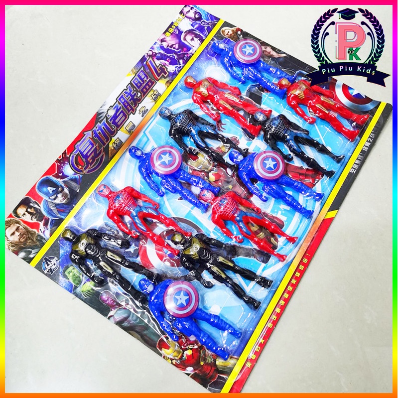 -------------Thông Tin Sản Phẩm + Tên Sp : Bộ 12 Mô Hình Siêu Anh Hùng + Combo : Bộ đồ chơi gồm 12 siêu anh hùng Avengers như: Spider man, Iron Man, Captain, v.v... + Kích thước vỉ: 41 x 32cm + Kích thước mô hình: 11.5cm + Xuất Xứ : Trung Quốc + Chất Liệu : Nhựa ABS an toàn cho bé + Khối Lượng : 250 gram