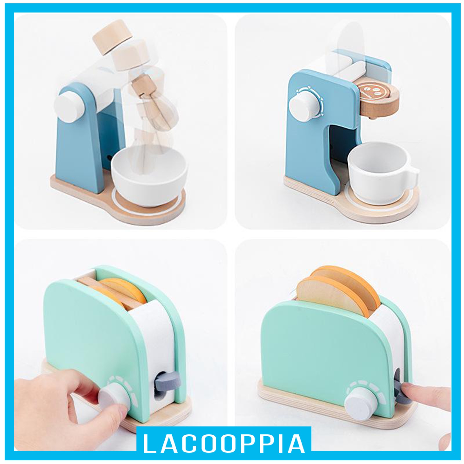 Description: Made from the highest quality material that's durable, safe, and crush-resistant.Adorable and realistic cutting fruits and vegetables set in bright shining colors to enchant even the very young toddlers. Kids can enjoy playing with the bright colored foods.Invite early dramatic play,enhance vocabularies and reinforce healthy eating with familiar looking produce. Promote Early Learning Confidence- It's more than just about becoming a little chef, they also inspire creativity and imagination, strengthen hand-eye coordination, help kids learn about science and foods, and more. Great Set or Addition to Any Toy Kitchen - Give this play toy food set as a gift to just about any kid! It makes a great reward or incentive to kids, Awesome for holidays, birthdays or any occasion. Specification: Material: Wooden+Plastic Size Chart: Mixer: 14.5x8.5x15cm/5.7x3.34x5.9inch Juicer: 9x8x15cm/3.54x3.14x5.9inch Coffee machine: 13.2x8.3x13.2cm/5.19x3.26x5.19inch Bread machine: 17x8x14cm/6.69x3.14x5.51inch Package Includes: 1 Set Wooden Kitchen Toy Note: Please allow 1-3mm measuring deviation due to manual measurement. Due to the different monitor and light effect,the actual color of the item might be slightly different from the color showed on the pictures.Thank you!