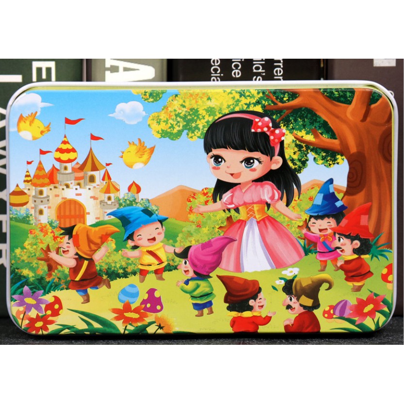 - Hộp đựng bằng kim loại tiện dụng, cất giữ gọn gàng, không lo bị mất miếng ghép khi chơi xong