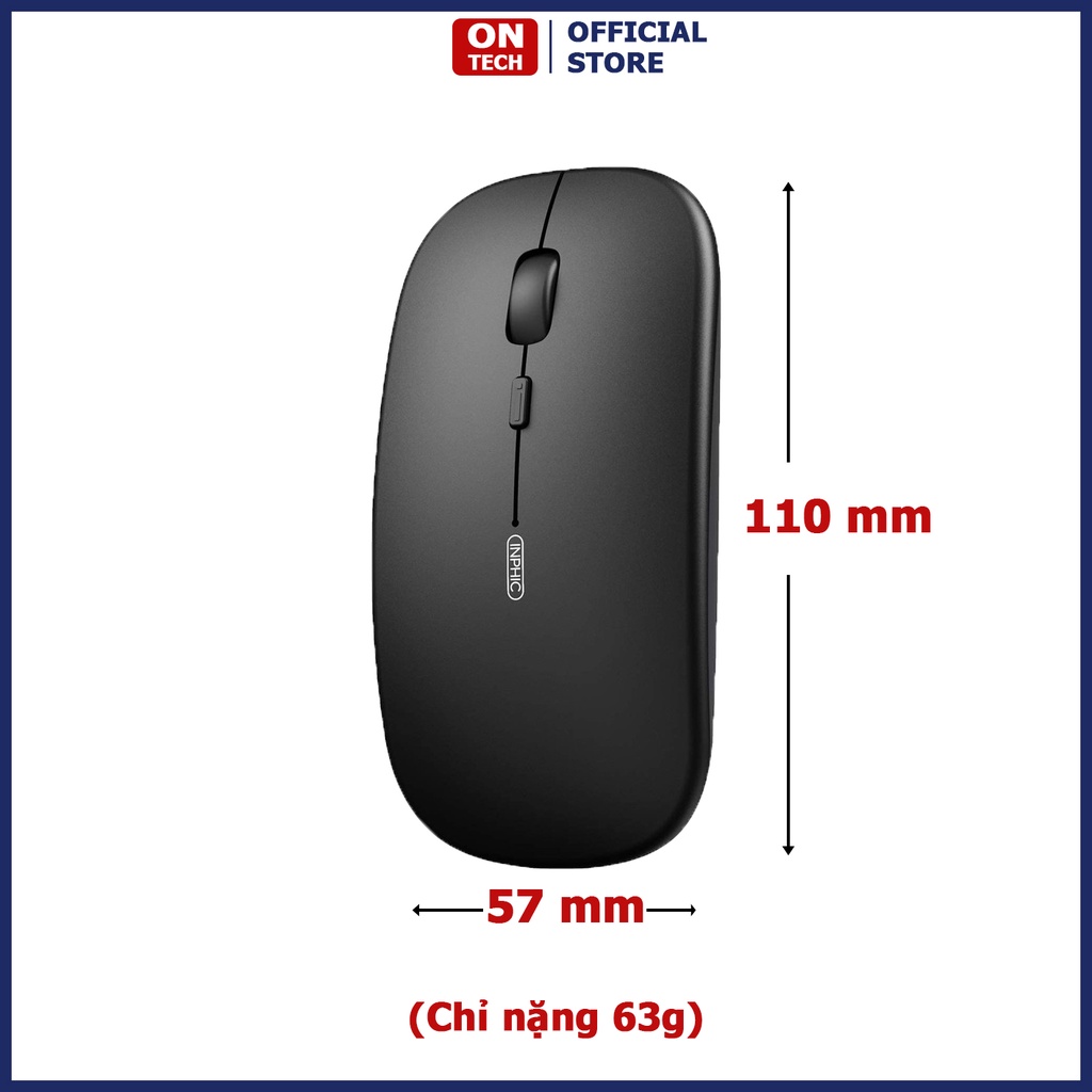 ------------------------------- THÔNG SỐ KỸ THUẬT *CHUỘT* Kích thước chuột: 110*57*21mm Độ phân giải: 800 – 1600 DPI Cân nặng bàn phím: 63 -/+ 5g Điện áp làm việc: 3.7V Dòng điện làm việc: 10mA Điện áp sạc: 5V Dòng điện sạc: 500mA Bộ cảm biến: Quang học Khoảng cách kết nối: 12m ----------------- Chuột Chống Ồn Cho Ipad Điện Thoại Máy Tính Bảng Laptop Bluetooth Không Dây Inphic M2B Chống Mỏi Tay Sử Dụng Pin Sạc