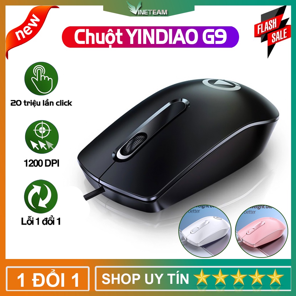 Chuột chuyên game có dây YINDIAO G9 siêu nhạy giá rẻ - hàng nhập khẩu Chuột game Gaming mouse YINDIAO G9 là sự kết hợp hoàn hảo giữa thiết kế và công nghệ quang học tiên tiến. Chuột không chỉ mang lại cảm giác thoải mái nhất khi sử dụng mà còn cho bạn thao tác chính xác , nhanh nhạy với khoảng cách sử dụng xa. 🛑 Thông tin sản phẩm: Màu: đen ,trắng , hồng Chất liệu: nhựa ABS Hệ thống theo dõi: Quang. Chiều dài cáp: 145cm. Cổng: USB 2.0. DPI: 800/1200 DPI. Độ bền: 10 triệu lượt nhấn. Hệ thống hỗ trợ: Windows 7/8/2000 / XP / Vista Mac OS hoặc mới nhất Kích thước: 11.66 x 6.20 x 3.82 cm (L * W * H) Trọng lượng: 83 g