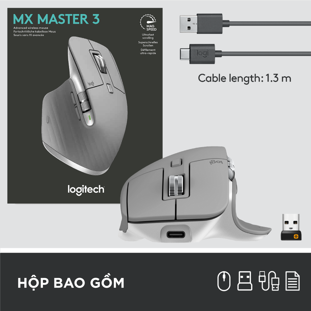 MX Master 3 kêt hợp giữa sự chính xác tức thì và hiệu năng tuyệt đối. đây là chuột cao cấp nhất trong Master Series của Logitech - Thiết kết hoàn hảo cho người làm sáng tạo và trang bị cần thiết cho dân coder. NÚT CUỘN MAGSPEED ĐIỆN TỪ SIÊU NHANH Cuộn 1.000 dòng trong 1 giây. Chúng tôi đã nâng cấp nút cuộn chuột. Nút cuộn Magspeed điện từ hoàn toàn mới có thể nhấp chính xác tới từng chi tiết nhỏ nhất vừa có thể cuộn nhanh tói 1.000 dòng trong 1 giây. Nút cuộn bằng chất liệu thép cao cấp cho cảm giác hoàn thiện và thao tác mượt mà, không ồn ào.