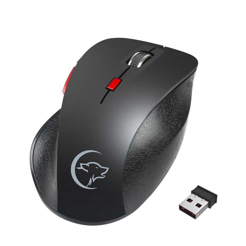 Product parameters: Resolution: 800, 1200, 1600, 2400dpi. Button: 5 buttons and 1 round wheel Wireless range: 10 meters Colour: Black Material: ABS Use power: 2*AAA battery Button click life: about 10 million times Rated voltage current: DC 1.5V Product size: 110 * 72 * 42mm System Requirements: Windows 98 Me 2000 XP Vista Win 7 Win8 10 Vista Mac OS or the latest version.