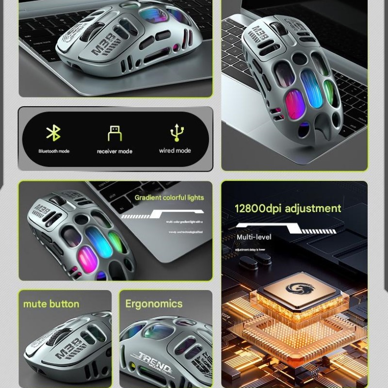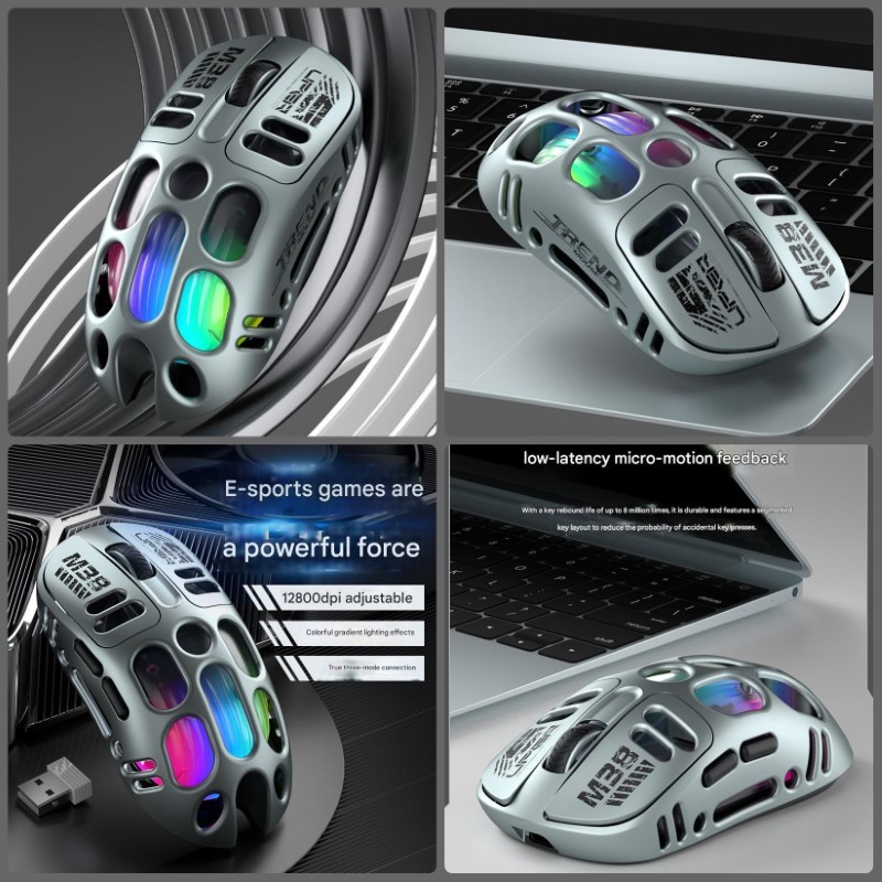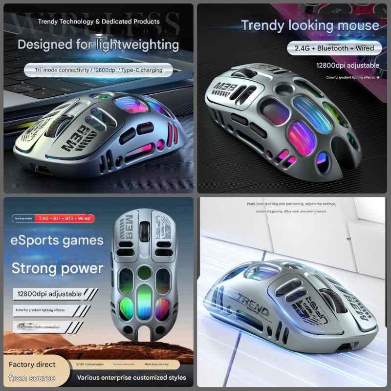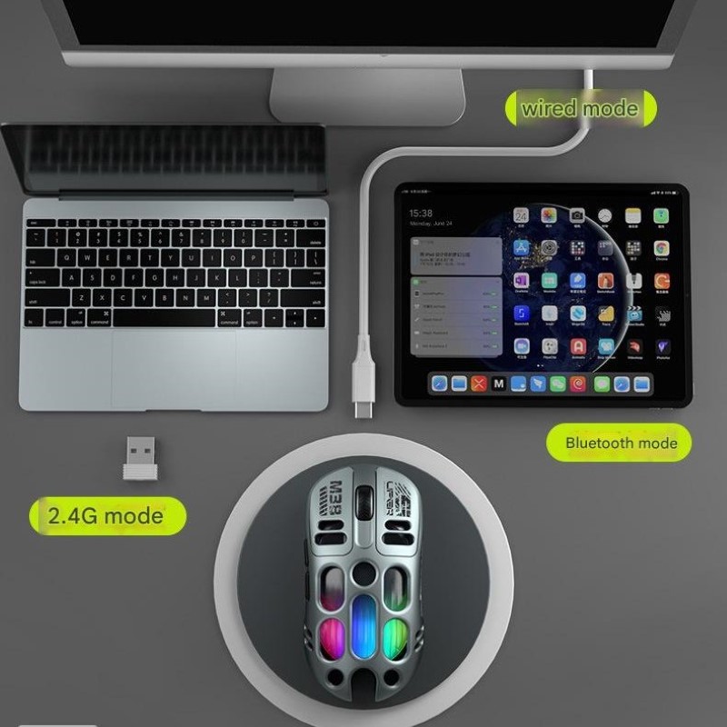 . Chuột Led Không Dây M38 đa kết nối Bluetooth 5.0 + Usb 2.4G + cáp 12800Dpi Pin Sạc TypeC