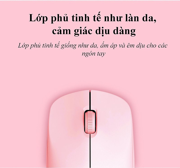 • Bề mặt chuột phẳng mịn được xử lý như da êm ái, hai bên thiết kế hõm dễ cầm, con lăn êm ái, gia tăng cảm giác thoải mái khi dùng.