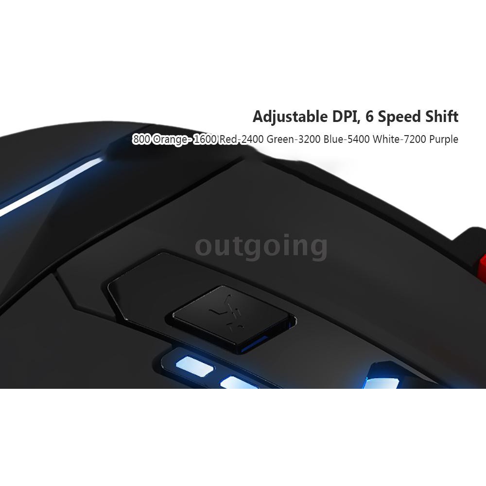 PCER◆ZELOTES T-60 7200DPI Wired Gaming Mouse Optical Adjustable USB Computer LED Backlight Mice 7 Buttons Gaming Mouse for PC Laptop Gamer Features: Forward and back button, press the forward button for more than 2 seconds, switch into seven monochromatic circulatory lighting. Six DPI gear shift, 800DPI Orange - 1600DPI Red - 2400DPI Green - 3200DPI Blue - 5400DPI White - 7200DPI Purple. Press button for 2 seconds to turn off the DPI lights, and press again for 2 seconds to open continuation current color cycle. Firepower Key, click once is equal to three times the firepower of the left button clicks, press firepower button for 3 seconds and the white light will flash 2 times, then switch into 2 burst. Game promotional high response rate, better play the performance of the mouse and zero delay and no jump during fierce gaming. 7 color cycle breathing + 6 single color breathing + 6 single color constant light. DPI and polling rate setting are closely related to the game performance, provides extreme stability while gaming. Excellent ergonomic design, long-term use without fatigue. High quality 1.8m braided-fiber cable for greatest durability and signal accuracy.