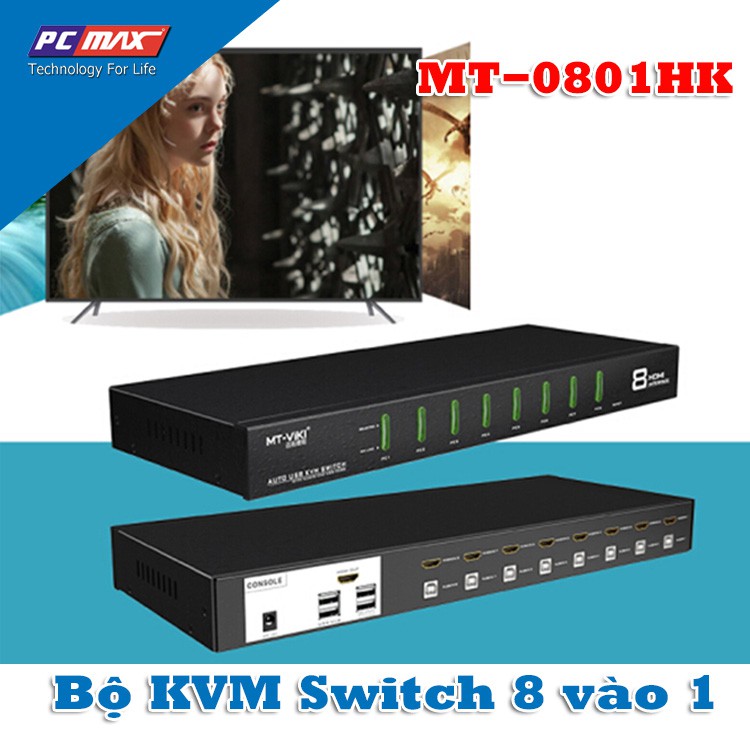 Bộ gộp Auto Switch KVM 8 cổng HDMI chính hãng MT-VIki MT-0801HK giúp các bạn chỉ với một bộ bàn phím, chuột, màn hình, kiểm soát tối đa 8 máy tính với hiển thị giao diện HDMI, chưa cần phải cài đặt phần mềm, chuyển đổi quan trọng, cũng có thể sử dụng phím nóng chuyển sang hỗ trợ cắm nóng, tự động quét có thể theo dõi bất kỳ một máy tính làm việc cho thị trường chứng khoán, giáo dục và các ngành công nghiệp khác...