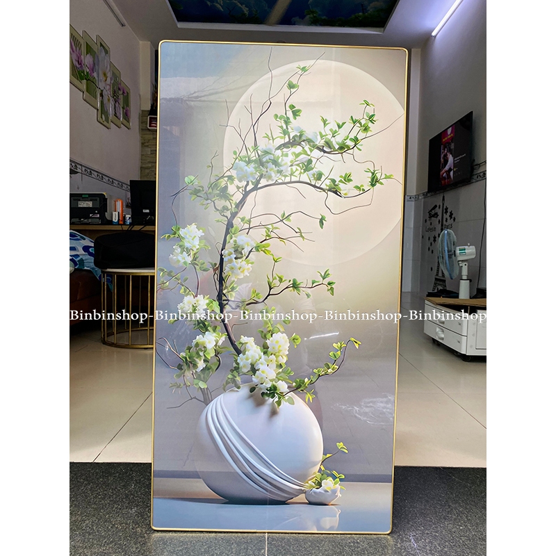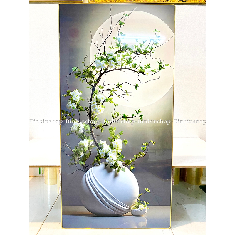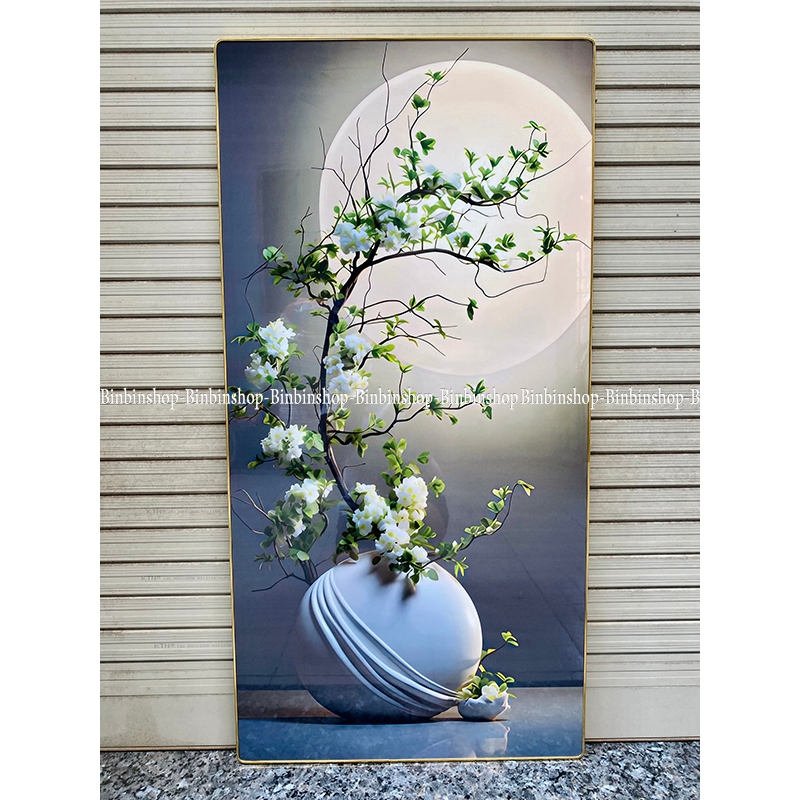 Tranh treo tường bình hoa dưới ánh trăng