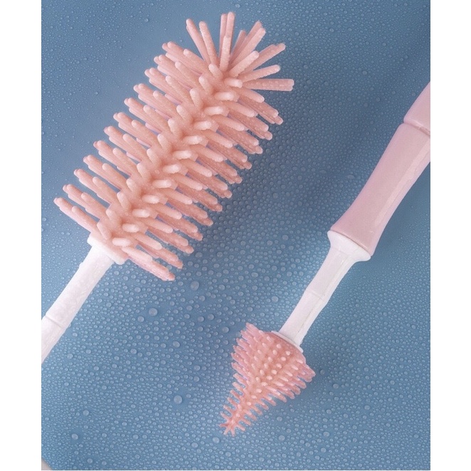 Cọ rửa bình sữa Silicon Package cao cấp 2 chi tiết [Tay cầm xoay 360 độ] ✔️Đặc điểm: ➖ Đầu cọ bình được làm bằng Silicon, an toàn, không chưa BPA. ➖ Các lông silicon co giãn, mềm mại, dày đặc nên có thể cọ rửa mọi góc của bình sữa. ➖ Lông silicon không hút nước nên không bao giờ lo mốc, lên mùi như mút xốp. ➖ Tay cầm cọ có thể xoay tròn 360 độ, giúp dễ dàng trong việc cọ rửa. ➖ Cây cọ nhỏ thiết kế để có thể vừa vặn núm ti bình, giúp cọ rửa núm ti sạch sẽ. ➖ Phần lông silicon có thể tháo rời, chịu được nhiệt độ đến 220 độ C và tay cầm chịu nhiệt độ 120 độ C, nên có thể khử trùng dễ dàng. ➖ Kích thước 31x8.5cm, 19.5x4cm.
