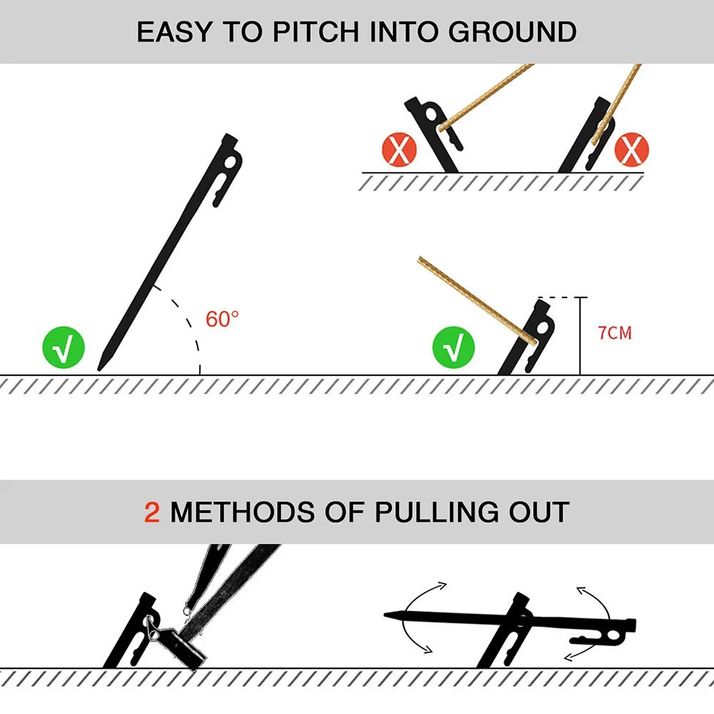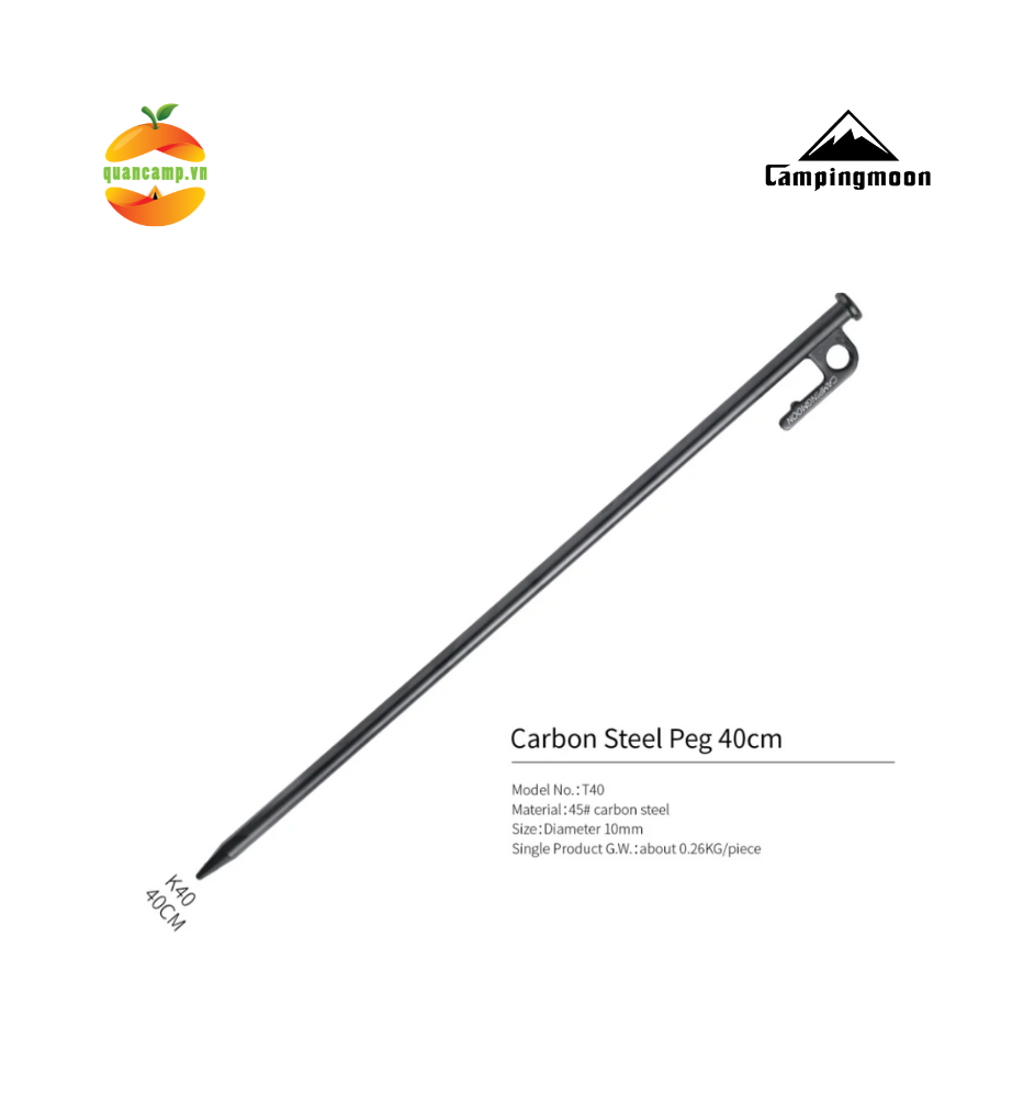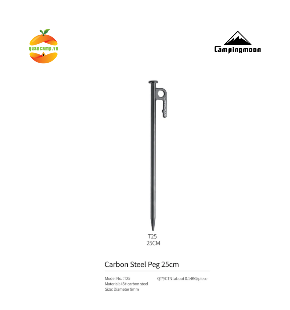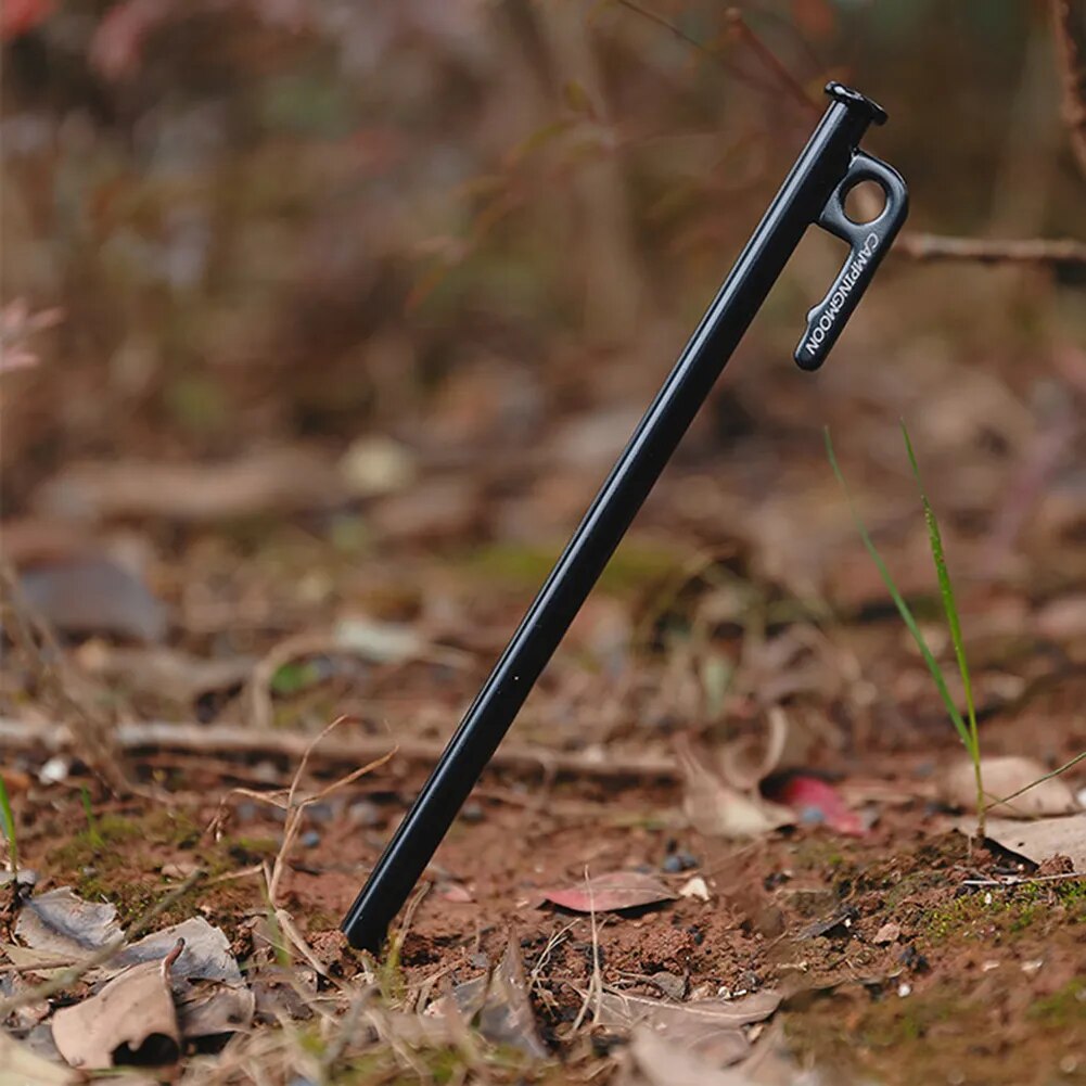 Cọc neo lều Campingmoon thiết kế đầu nhọn vừa phải, dễ dàng đóng xuống đất nhưng không gây sát thương. Có móc để nhổ lên dễ dàng. Dễ dàng sử dụng. Cố định lều chắc chắn.
