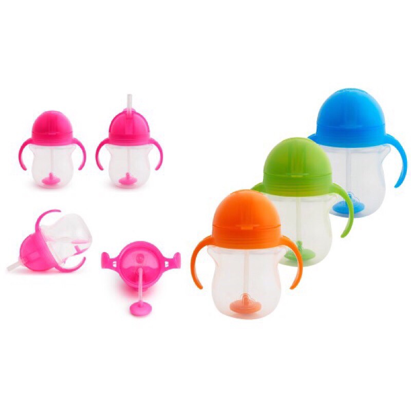 Với cốc uống hút mọi tư thế Munchkin ngoài tính năng giúp bé tập uống hiệu quả, không bị đổ nước ra ngoài và hạn chế tối đa tình trạng sặc nước như khi cho trẻ uống các loại cốc thông thường khác. • Cốc có ống hút mềm giúp tạo cho bé thói quen tự uống nước hàng ngày • Thiết kế nhỏ ở giữa và tay cầm giúp bé dễ cầm khi uống. • Cốc có khả năng giữ nhiệt tốt, giúp sữa sau khi pha có thể giữ ấm được lâu mà không làm mất chất dinh dưỡng hay những cốc nước trái cây mát lạnh vẫn giữ nguyên hương vị cho bé. • Phù hợp với bé từ 6 tháng tuổi trở lên. Đặc Điểm Cấu Tạo Cốc Ống Hút Mọi Tư Thế Munchkin • Cốc uống hút mọi tư thế Munchkin được làm từ chất liệu nhựa cao cấp, không chứa BPA, tuyệt đối an toàn cho sức khỏe của trẻ nhỏ. • Ống hút được làm bằng chất liệu silicone mềm, êm dịu với răng nướu của bé. • Thiết kế thông minh với phần chân ống hút nặng cho phép ống hút luôn tiếp xúc với nước, giúp bé có thể uống nước ở mọi góc độ, thậm chí là dốc ngược. • Nắp cốc kín khít chống đổ 100%, dễ dàng đóng mở cho bé sử dụng cốc độc lập. • 2 tay cầm dài và nhỏ gọn giúp bé thuận tiện cầm nắm, có thể tháo rời khi không sử dụng. • Cốc có chổi cọ ống hút đi kèm. Lưu Ý Sử Dụng Cốc Ống Hút Mọi Tư Thế Munchkin • Không dùng trong lò vi sóng hoặc đựng chất lỏng nóng. • Không luộc hoặc tiệt trùng. • Không tháo vật nặng ra khỏi ống hút.