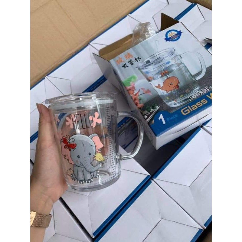 Cốc Pha Sữa Thủy Tinh Chia Vạch  Kèm Nắp Đậy Siêu Tiện Lợi