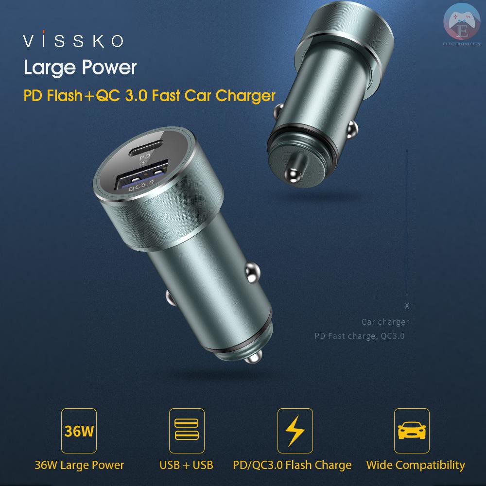 Specifications: Brand: vissko Type-A Interface: USB + USB (QC3.0+QC3.0) Type-B Interface: Type-C + USB (PD+QC3.0) Material: Aluminum alloy Input: DC12- 24V Type-C Output: Support PD fast charging protocol, 5V/ 3A, 9V/2A, 12V/1.5A USB Output: Support QC fast charging protocol, 3.6-6.5/3A, 6.5-9V/ 2A, 9-12V/ 1.5A Output: Max. 36W Working Temperature: 0-55 Deg.C Product size: Approx. 6.3 * 2.5 * 2.5 cm Product weight: Approx. 29g Package size: Approx. 11.3* * 7.5 * 2.7 cm /4.45 * 2.95 x 1.06in Package weight: Approx. 50g/1.76oz