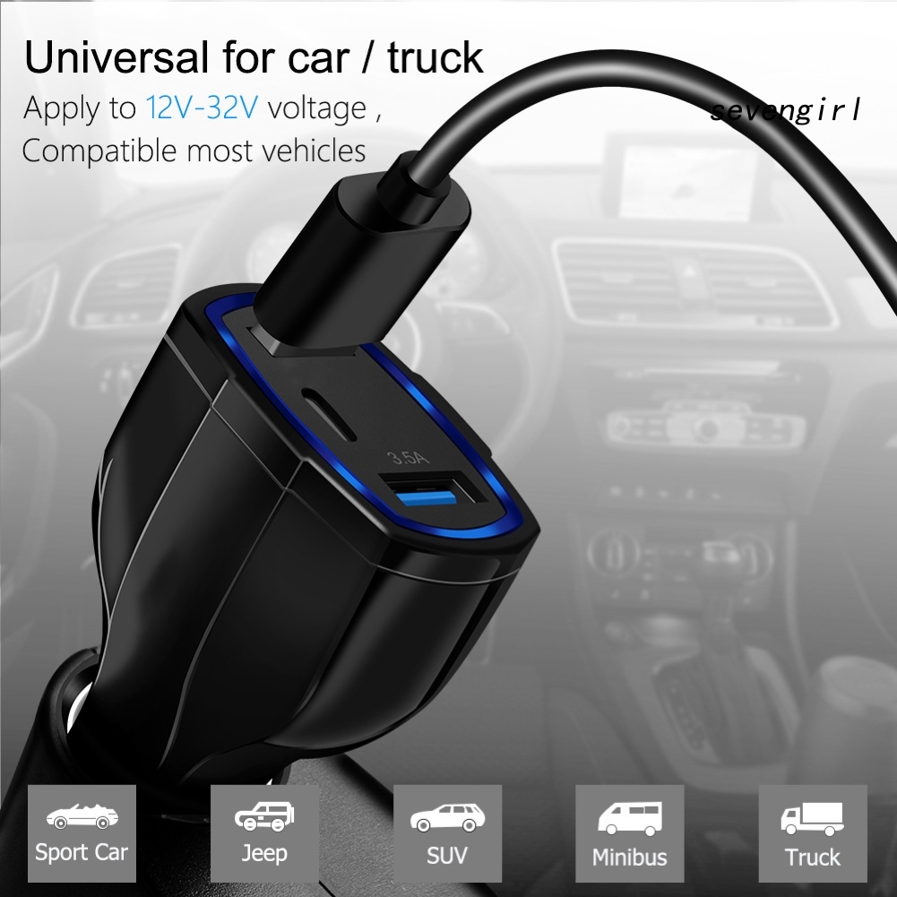 Item Name: Car Charger Material: PC Input: 12/24/32V Output: 5V/3.5A, 9V/1.8A Features: Fast Charging, Anti-scratch, Over-charge Protection Size: 7.9cm x 4.4cm x 2.4cm/3.11" x 1.73" x 0.94" (Approx.)