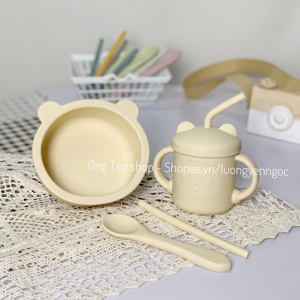 Giới thiệu Cốc tập hút silicon hình gấu xinh xắn cho bé tập uống 2in1 kèm ống hút thay thế