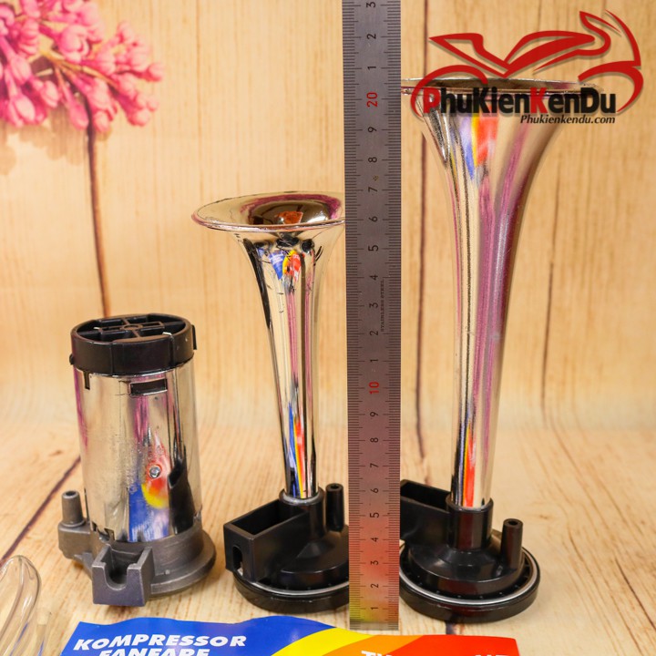 **CHI TIẾT SẢN PHẨM: +SẢN PHẨM: CÒI HƠI XE TẢI, XE Ô TÔ, XE MÁY MỘT BỘ 12V & 24V - CHẤT LIỆU: (KIM LOẠI & NHỰA) - Màu sắc + Mẫu mã: Chọn trực tiếp hoặc Chọn khi Nhân Viên Shop gọi xác nhận đơn hàng... -Mức âm thanh: 110 (db) -Kích thước: ỐNG LỚN dài 220mm, ỐNG NHỎ ngắn 170mm.