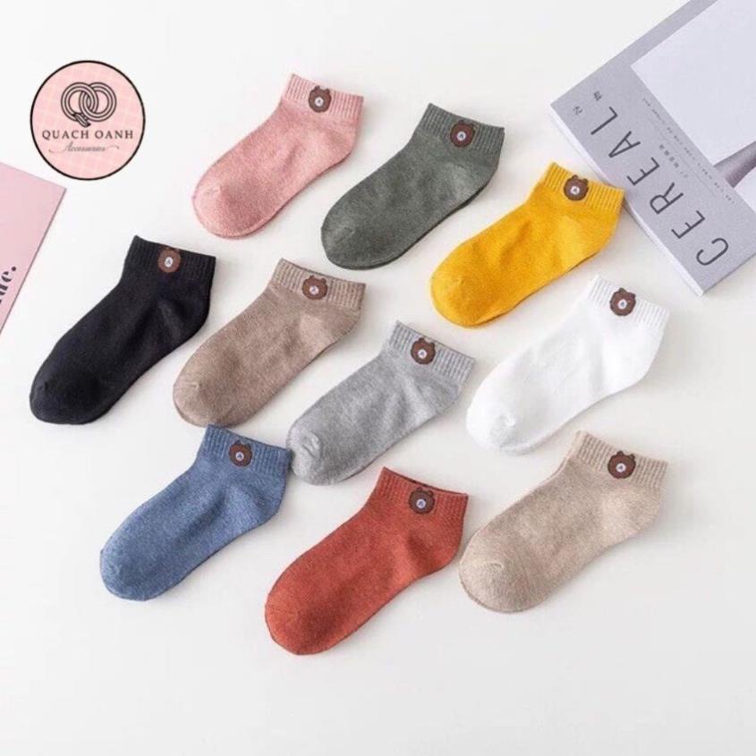 Giới thiệu Combo 10 đôi tất gấu cổ ngắn họa tiết Brown tặng kèm túi đựng - TG10