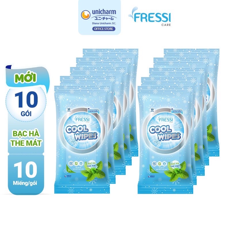 Giới thiệu Combo 10 gói khăn ướt chăm sóc da Fressi Care Cool gói 10M