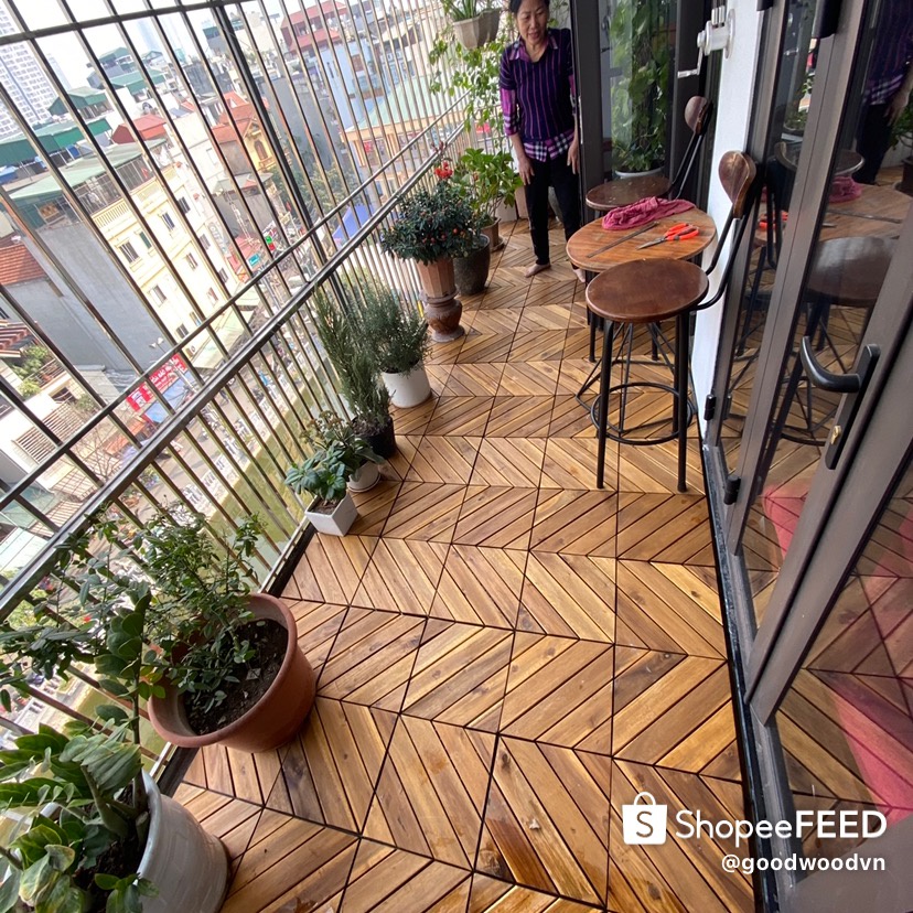 Nhà cửa & Đời sống > Dụng cụ & Thiết bị tiện ích > Mái & sàn || Combo 10 VỈ GỖ LÓT SÀN BAN CÔNG GỖ TỰ NHIÊN NGOÀI TRỜI 6 NAN CHÉO - SÀN GỖ TỰ LẮP RÁP TỰ NHIÊN