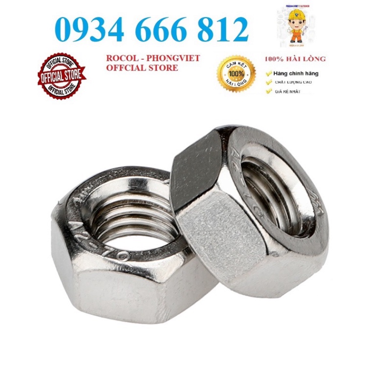 Thông số kỹ thuật Đai ốc lục giác: + Kích thước: M3 -> M64 + Tiêu chuẩn: DIN 934 + Vật liệu: Inox304