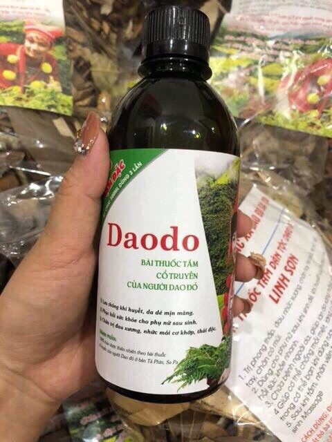 Tắm lá thuốc của người Dao đỏ hiện nay đã trở nên quen thuộc và được các khách hàng tin tưởng. Vốn quý này được nhân rộng dưới những hình thức khác nhau, mọi người đã ngày càng nhận ra công dụng tốt của loại thuốc này và ngày càng sử dùng nhiều hơn. Nhận được sự quan tâm của khách hàng ngày càng nhiều về sản phẩm lá thuốc tắm người Dao đỏ và trong cuộc sống hiện đại mọi người ít có nhiều thời gian đun nấu, chúng tôi đã đầu tư công nghệ nồi hơi mới nhất để chưng cất loại thuốc này nâng cao chất lượng thành phẩm. Khi được chiết xuất thành nước và cô đặc lại thuốc tắm đậm đặc và chất lượng tốt hơn, bảo quản được lâu hơn, rất thuận tiện cho người dùng và vận chuyển đi xa. Lá thuốc được đun trong nồi hơi công nghệ hiện đại, đun liên tục trong 8 tiếng đồng hồ. Mỗi chai nước cốt sẽ tương ứng 1 kg thuốc tắm cho vào đun. Nước cốt vô cùng đậm đặc như cao. Khi pha không bị lắng cặn, pha với nước ấm nóng bạn sẽ có một bồn hoặc chậu nước tắm màu nâu đen nhưng vẫn trong mà không vẩn đục, tỏa mùi hương thơm phức của tinh dầu đặc trưng. Chỉ cần ngâm mình nước tắm trong bồn tắm hoặc dội 20 đến 25 phút bạn sẽ thấy hết đau nhức, tắm xong cơ thể nhẹ nhõm, tinh thần sảng khoái, ngủ sâu giấc và sức khỏe được phục hồi. Thuốc tắm người Dao đỏ có những tác dụng sau: - Dùng để chữa các bệnh đau nhức cơ, xương, khớp - Dùng để chữa các bệnh cảm cúm, ngứa ngoài da, táo bón, đinh nhọt,... - Giúp phục hồi sức khỏe cho người sau khi ốm hoặc nằm viện. Đặc biệt, thuốc tắm Dao đỏ dành tốt nhất cho bà mẹ sau khi sinh nở, có tác dụng: - Tăng cường sinh lực, phục hồi sức khỏe cho phụ nữ sau sinh, giúp sạch sản dịch. - Phòng chống các chứng bệnh hậu sản. - Tăng cường thải độc qua da khi tắm, co lỗ chân lông, hạn chế các tác nhân có hại xâm nhập vào cơ thể. - Giảm đau mỏi, chống stress, tạo giấc ngủ sâu, lấy lại cân bằng về cảm xúc. - Hỗ trợ điều trị và ngăn ngừa các bệnh chứng: phong thấp, nhức mỏi, đau đầu, cảm cúm… cho phụ nữ sau sinh. - Tạo hương thơm, tẩy uế, mạch máu lưu thông. Giúp cho làn da trở nên hồng hào, mịn màng. Hướng dẫn sử dụng: - Chuẩn bị một bồn nước hoặc chậu nước nóng 40 đến 50 độ, lắc nhẹ chai nước tắm rồi đổ vào. Nếu tắm bồn 1 chai 300ml tắm được 1 lần, nếu tắm chậu 1 chai 300ml tắm được 3 lần. Thời gian tắm tốt nhất: 20 đến 25 phút tùy theo thể trạng từng người. Nếu có cảm giác say lâng lâng thì nên dừng tắm và lau khô người. - Chống chỉ định: người mắc các chứng bệnh về tim mạch, người cao huyết áp. Một số lưu ý khi sử dụng sản phẩm: - Không hòa nước tắm với nước lạnh. - Không nên dùng chung với sữa tắm, dầu gội đầu. - Tắm trong phòng kín gió. - Không cần tráng lại bằng nước thường. Việc tắm bằng lá thuốc của người Dao đỏ với công nghệ chiết xuất mới trở nên dễ dàng, đơn giản. Không có thời gian đến các spa, không có thời gian đun nấu chưng cất tại nhà, bạn vẫn có thể tắm lá thuốc Dao đỏ một cách hiệu quả nhất. Mỗi chai 300 ml tắm được 4 lần Siêu đậm đặc . Dùng 2 chai là đủ.