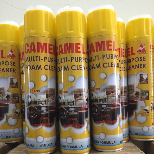 Chai Vệ Sinh Đa Năng Camel với tác động tạo bọt loại bỏ vết ố và bụi bẩn trả lại ngoại hình như mới.-Trong ôtô và tàu thuyền: làm sạch trên các chất liệu nhựa, vải, thảm, bọc da và mạ kim loại.-Trong gia đình: làm sạch các thiết bị, đồ nội thất, các đồ dùng có chất liệu fomica, bê tông, gạch men, tường (sơn hoặc quét vữa), màn hình tivi – máy tính, sứ, gỗ hoặc kim loại…Làm sạch vết ố do nước trà và nước ngọt có ga trên các chất liệu nhựa, vải, thảm, bọc da và mạ kim loại.Hướng dẫn sử dụng Chai Vệ Sinh Đa Năng Camel:1.
