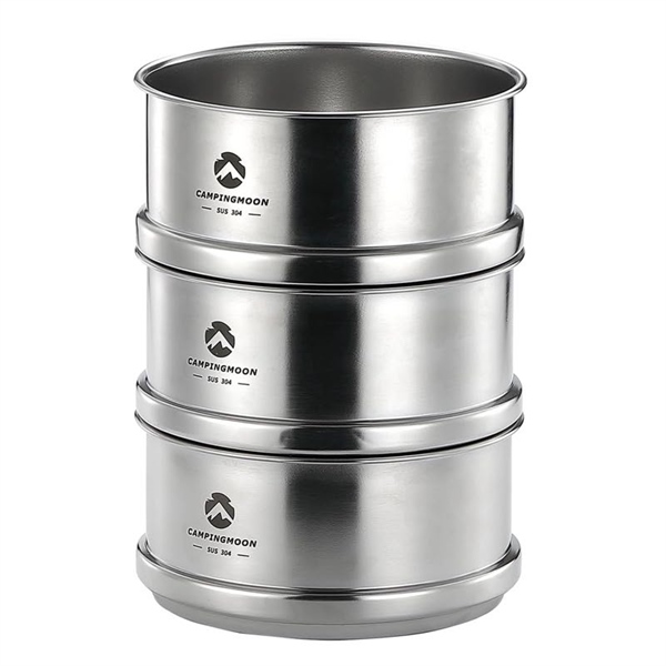 Bộ sản phẩm bao gồm: 1 chén đun S369 + 3 xửng hấp S362 + 1 vỉ hấp W9 + 1 nắp gỗ S-MG + 1 túi đựng Campingmoon T-9-BC