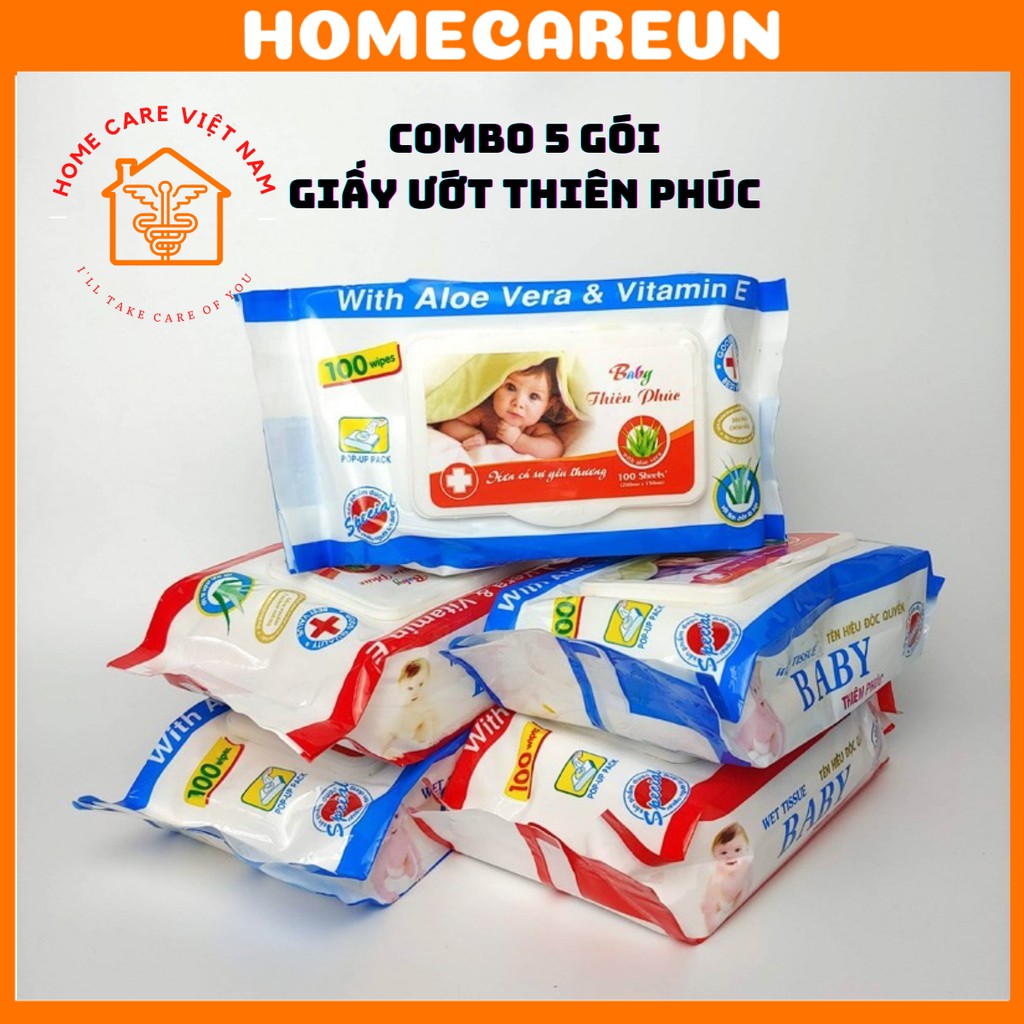 Giới thiệu Combo 5 gói khăn giấy ướt Baby Thiên Phúc 1 gói 100 tờ - an toàn sức khoẻ