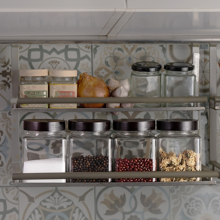 Sắp xếp gọn trên kệ bếp hoặc tủ gia vị