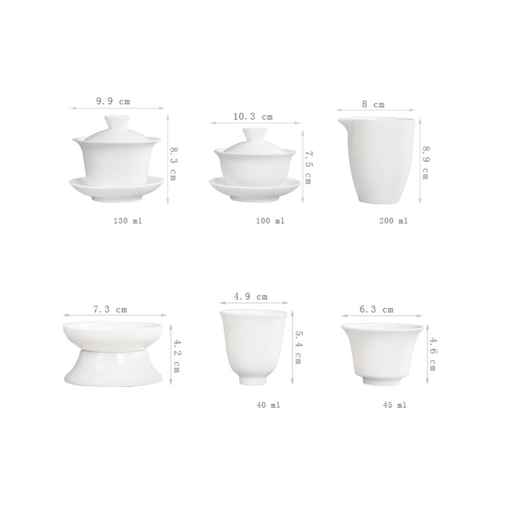 - Trọn bộ : 6 ly nhỏ + 1 ấm lớn + 1 bình trung