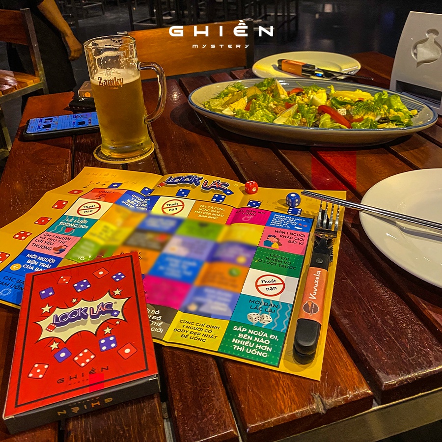 Nếu các trò chơi cùng đồng bọn đã quá nhàm chán và không biết cách nào để nâng cấp cuộc vui thì ring ngay bộ LOOK LẮC nhà Ghiền nhé! Những ô nhiệm vụ của bảng game giúp bạn cùng đồng bọn mở lòng với nhau hơn. Vừa kể cho nhau nghe những câu chuyện thầm kín, vừa cụng ly lâng lâng cảm xúc. Đây sẽ là cơ hội có 1-0-2 dành cho các “đồng âm” thân thiết và khăng khít hơn đó.