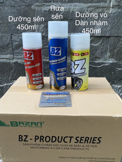 Combo 3 Chai Xịt Vệ Sinh Sên Dưỡng Sên và Xịt Đánh Bóng Lốp xe BZ