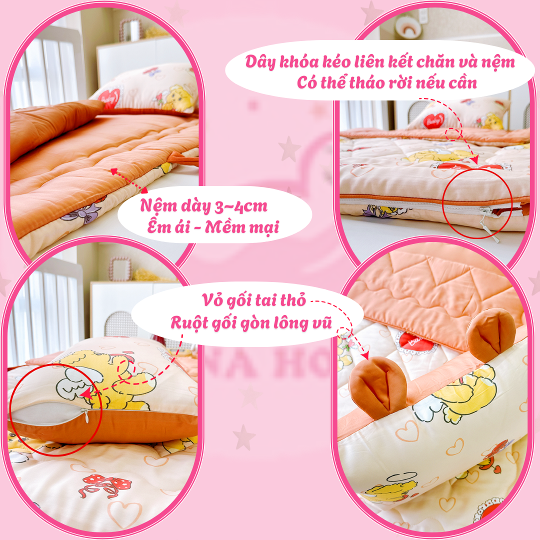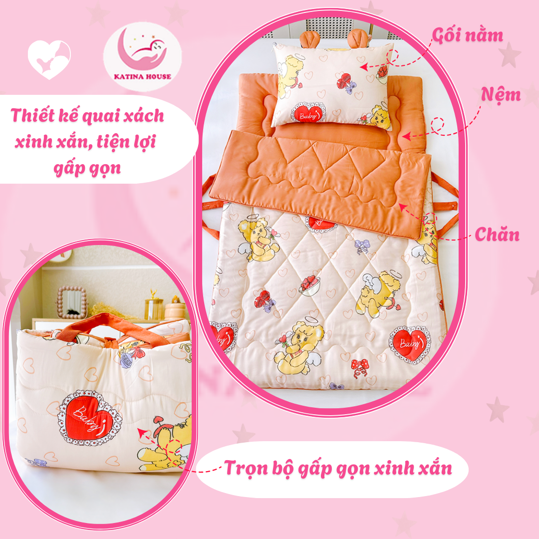 BỘ CHĂN GỐI NỆM 5 TRONG 1 GẤP GỌN – TIỆN LỢI CHO BÉ ĐI HỌC