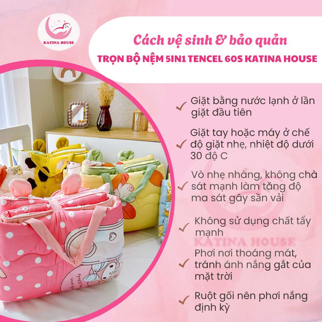 - Chất liệu vải Tencel 60s cao cấp phủ toàn bộ bề mặt sản phẩm: mềm mịn, thoáng khí, an toàn cho da bé.